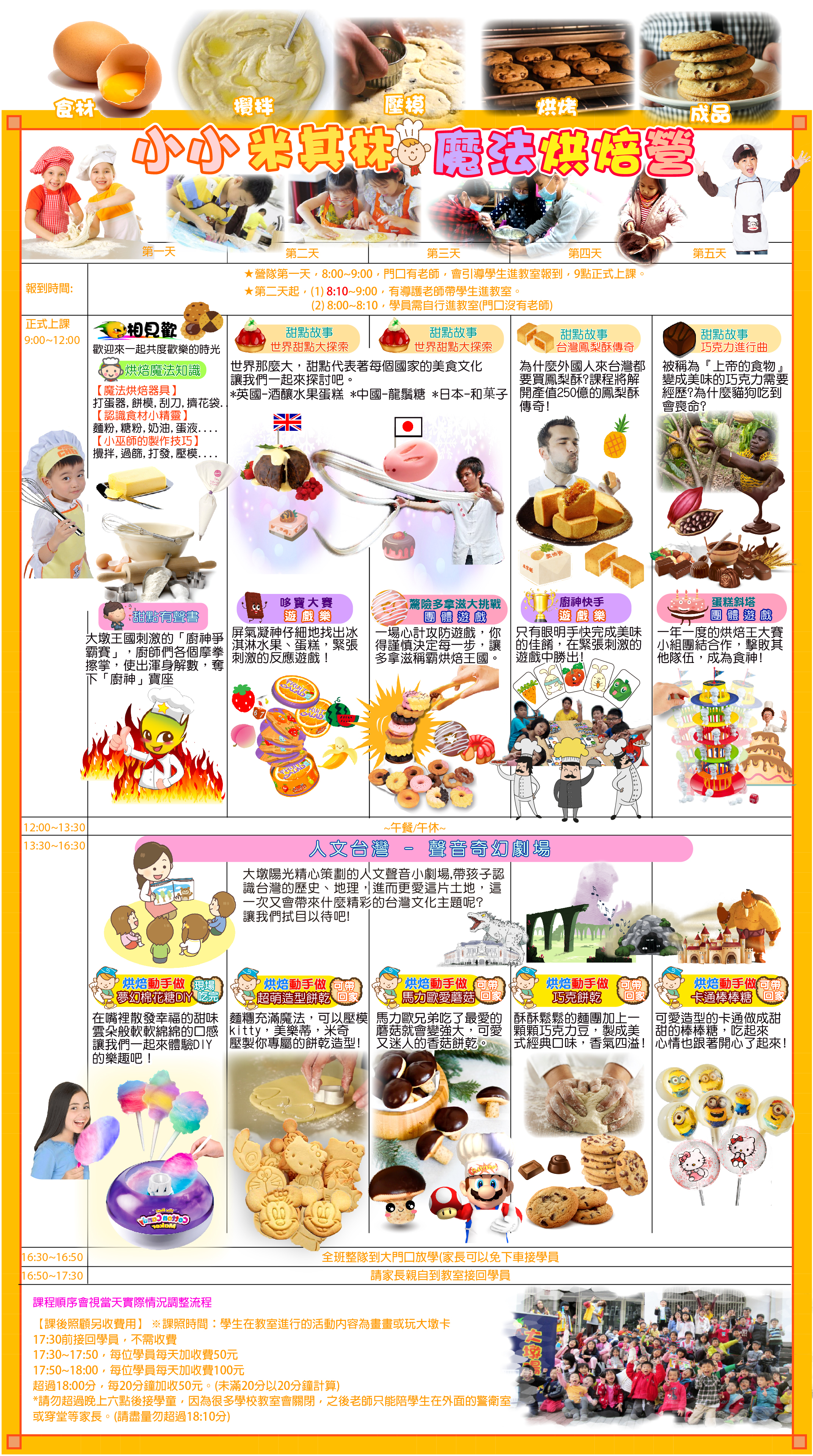 (2)烘焙的魔法森林中,發揮想像力,掌控時間,增進人際關係,從烘焙中學知識技能,成為一個小小米其林-烘焙魔術師。
