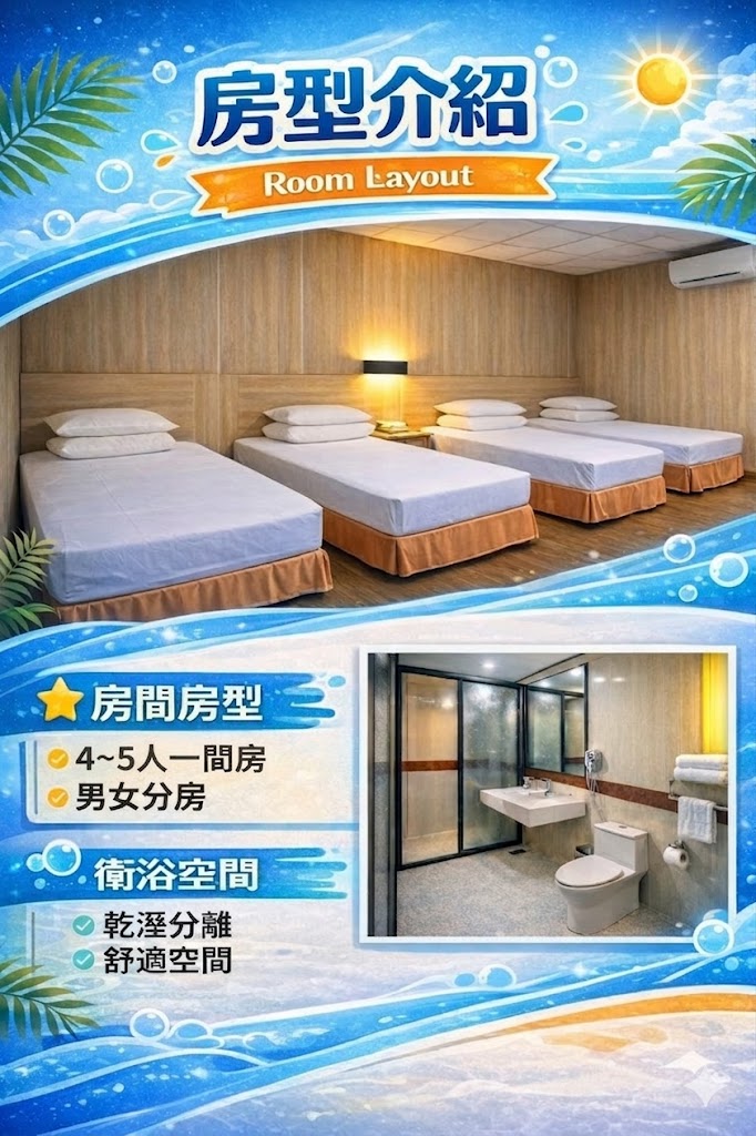 隨機分配4人房~6人房 (恕不指定房型,敬請家長見諒)