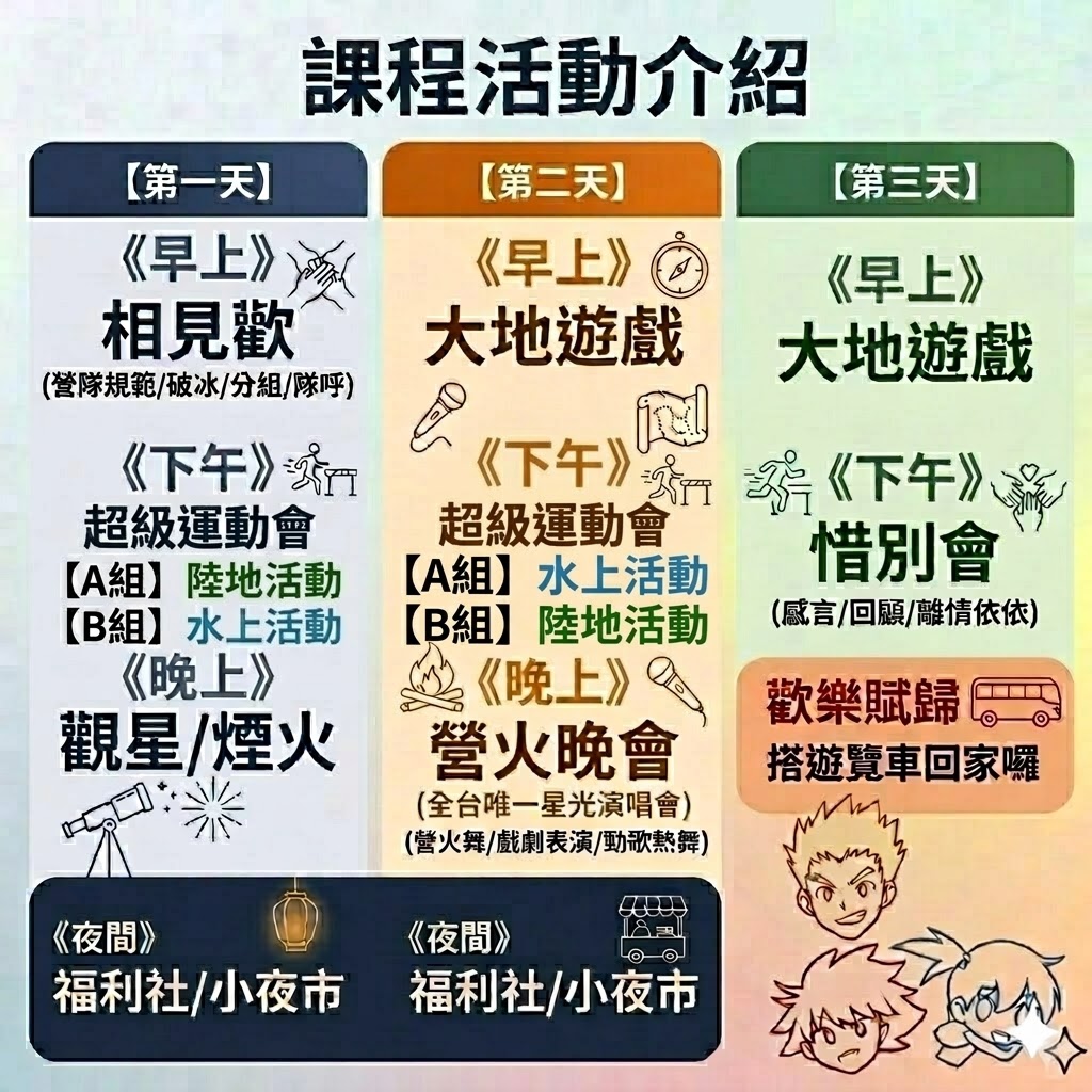 【過夜營隊注意事項】(請家長看完到最下面↓)