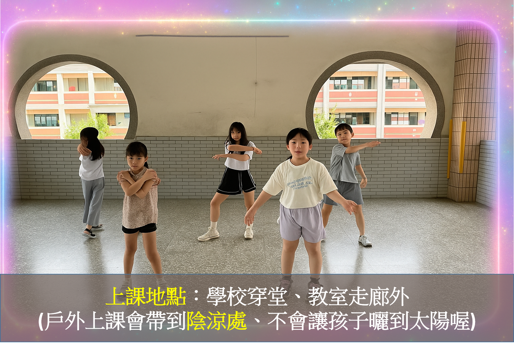 A1:課程多在普通教室、穿堂或空曠陰涼處上課