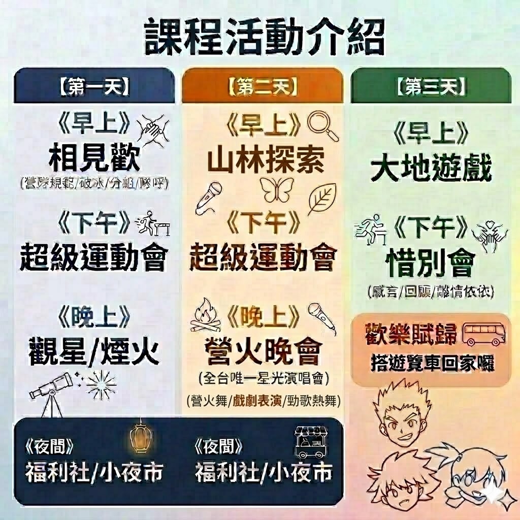 【過夜營隊注意事項】(請家長看完到最下面↓)